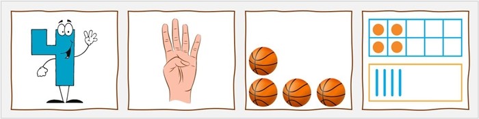 4 sayısı işaret, orta, yüzük ve küçük parmaklar açık; baş parmak kapalı olacak şekilde gösterilir. 4 sayısı ile şekilde gösterilen toplar ifade edilebilir, 4 tane basketbol topu.