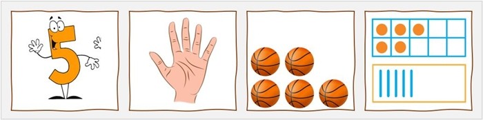 5 sayısı tüm parmaklar açık olacak şekilde gösterilir. 5 sayısı ile şekilde gösterilen toplar ifade edilebilir, 5 tane basketbol topu.