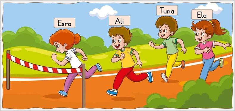 Yukarda verilen görselde ilk sırada Esra, Tuna’dan önce Ali, Ali ile Ela arasında Tuna, en sonda da Ela koşmaktadır.