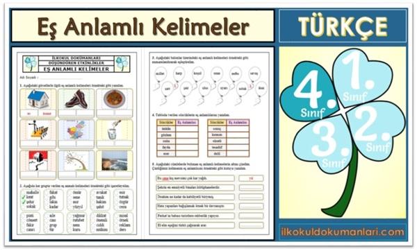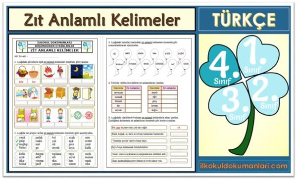 4. Sınıf Zıt Anlamlı Kelimeler Etkinlikleri