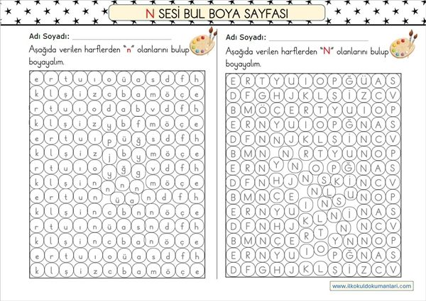 N sesi boyama etkinlikleri sayfasını ister sınıfta etkinlik olarak kullanın ister ödev olarak eve verin.