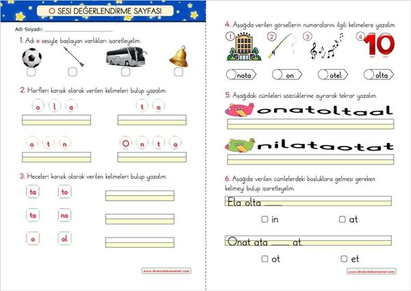 - O sesi içeren karışık hecelerde gizlenen kelimeyi bulup yazma,
